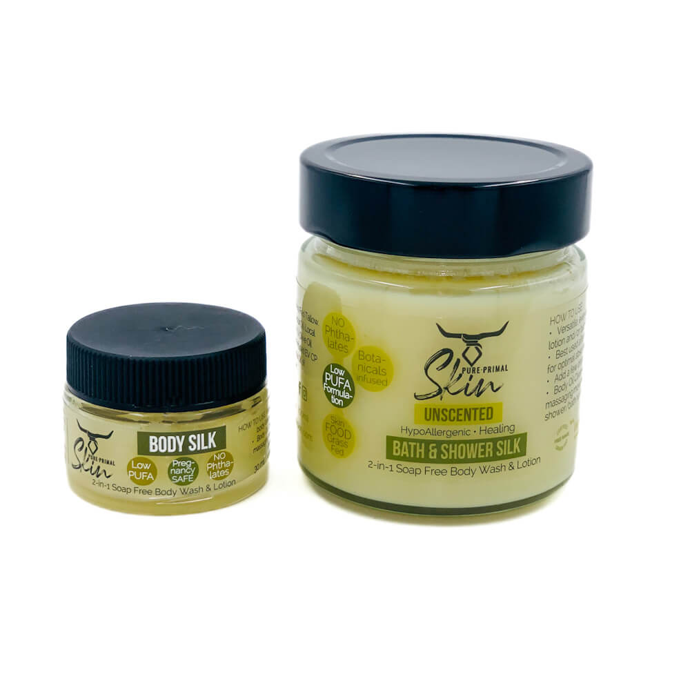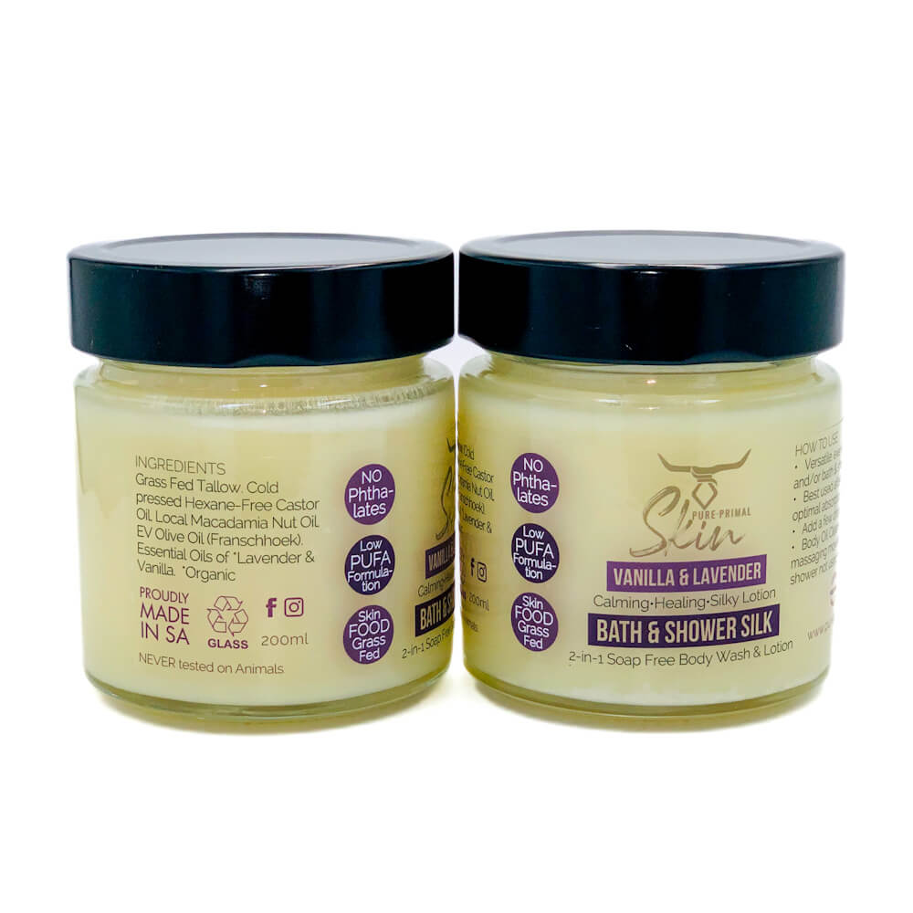 Bath & Shower Silk is a versatile, nourishing 2-in-1, Soap-Free Body Wash and Body Serum/Lotion.