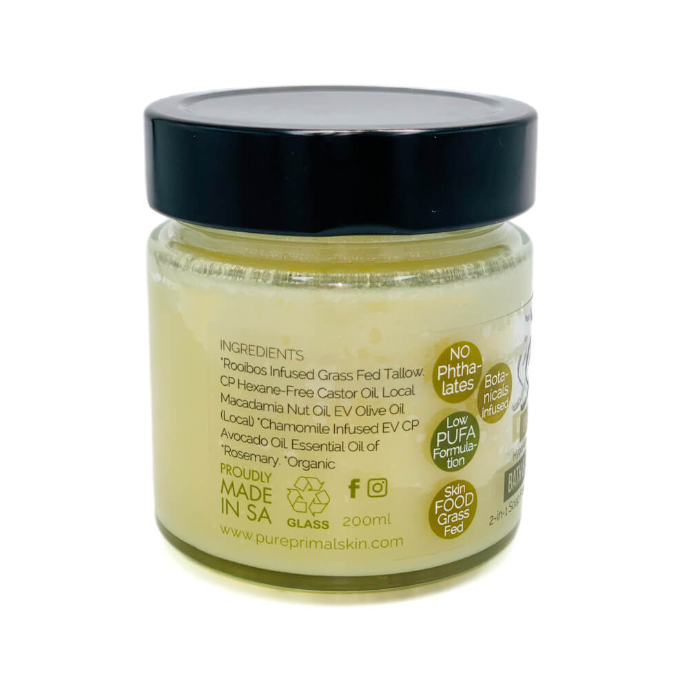 “Water is usually added to products to make it more fluid – not so with your Pure Primal Skin products,” Sylvie explains. “Instead of water, which dehydrates the skin when applied topically, we add Extra Virgin, locally produced Olive Oil from Franschhoek to create this creamy, smooth body silk.”