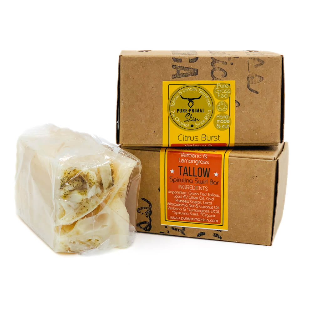 Citrus Burst – Spirulina Swirl Bar :  Pure Primal Skin Tallow Bath & Hair Soap Bar