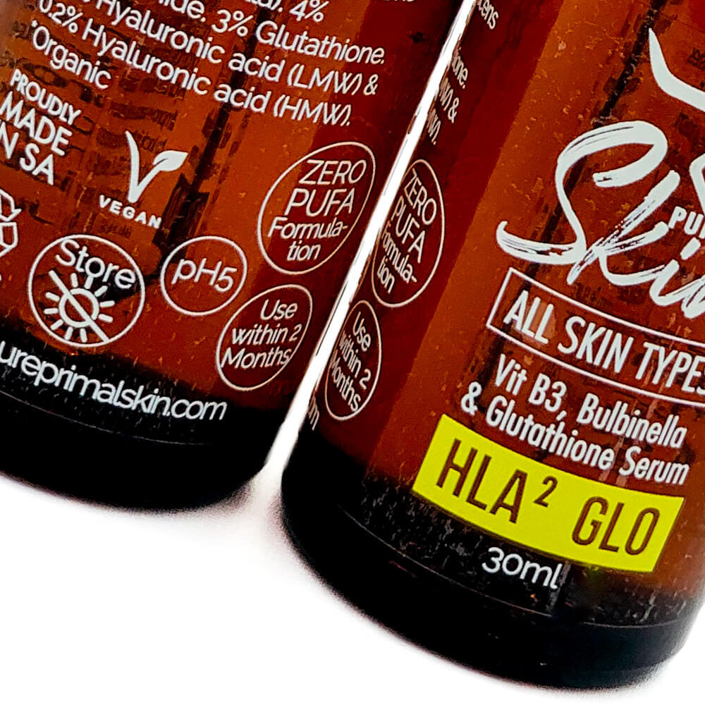 ALWAYS apply a moisturiser (cream or oil) after applying HLA² Glo Ⓥ to ‘lock-in’ the hydration properties of the serum.