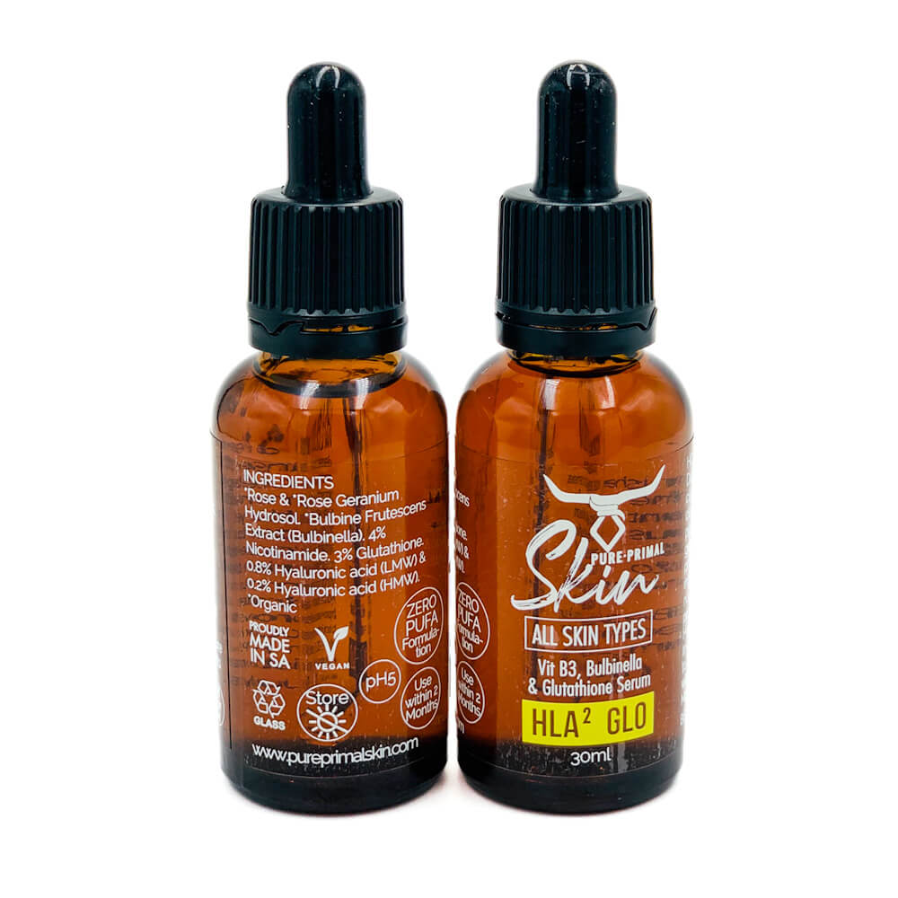 HLA² Glo Ⓥ Facial Serum : Hyaluronic Acid With B3 (Nicotinamide), Bulbinella & Glutathione
