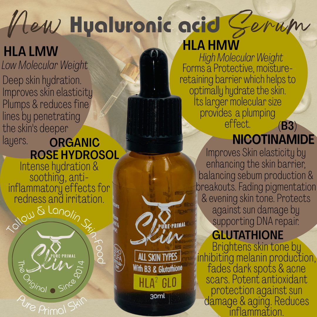 HLA² Glo Ⓥ Facial Serum : Hyaluronic Acid With B3 (Nicotinamide) & Glutathione