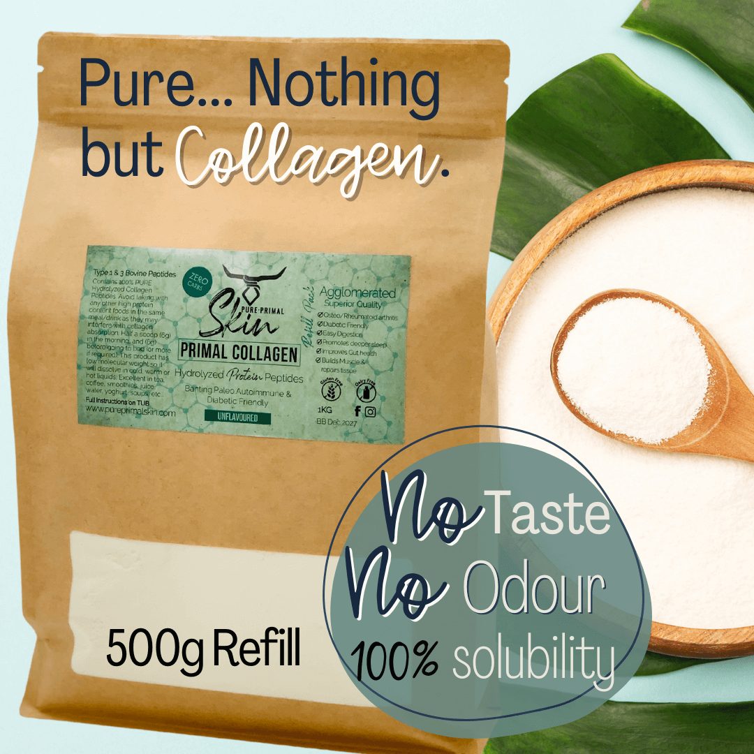 Primal Collagen – Collagen Peptides (Type I & III) – Packs : 150g Travel Size / 500g Refill / 1kg Bulk